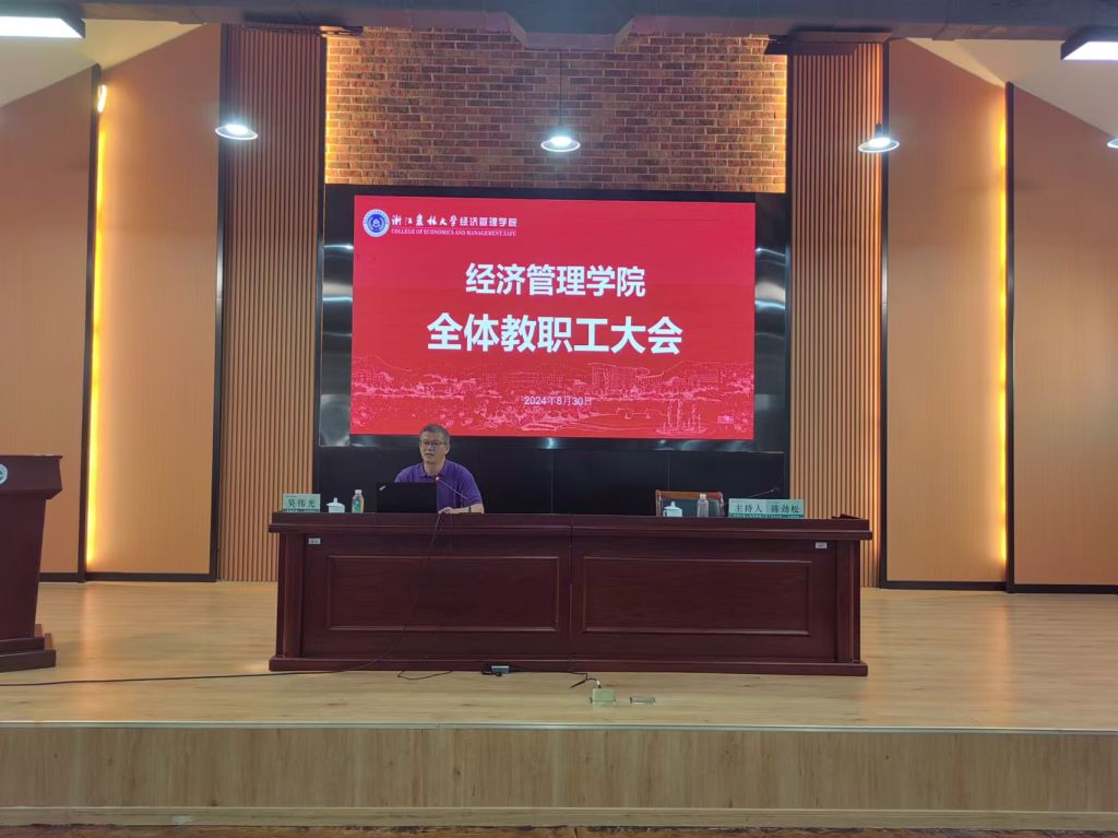 学院召开全体教职工大会 8月30日下午,学院在衣锦校区农林大讲堂召开新学期全体教职工大会。学院领导班子成员及全体教职工参加会议。大会由党委书记陈劲松主持。院长吴伟光总结了学院上半年工作,并对下半年的重点工作进行了部署。他分析了当前学院发展态势,提出三点要求,一是坚定信念,更上层楼,二是发掘潜能,主动作为,三是明确重点,真抓实干。他指出学院量质齐升的教师队伍是学院高水平发展的最大底气,要精准把握自身所处的方位,认真贯彻落实...
