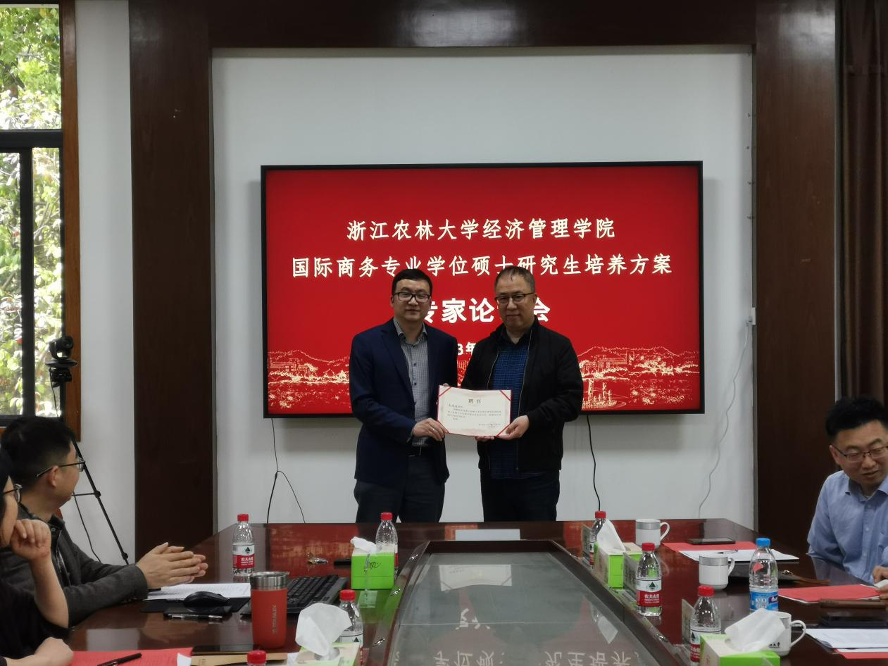 全国国际商务专业学位研究生教育指导委员会委员、浙江大学国际商务学科负责人马述忠教授担任论证专家组组长,浙江财经大学经济学院院长王正新教授、中国农业大学565net必赢客户端李春顶教授、南京农业大学565net必赢客户端国际商务专硕点负责人何军教授、浙江工商大学经济学院马淑琴教授、浙江省商务研究院陈芳芳院长、浙商资产战略发展部总经理冯毅等应邀担任论证专家。