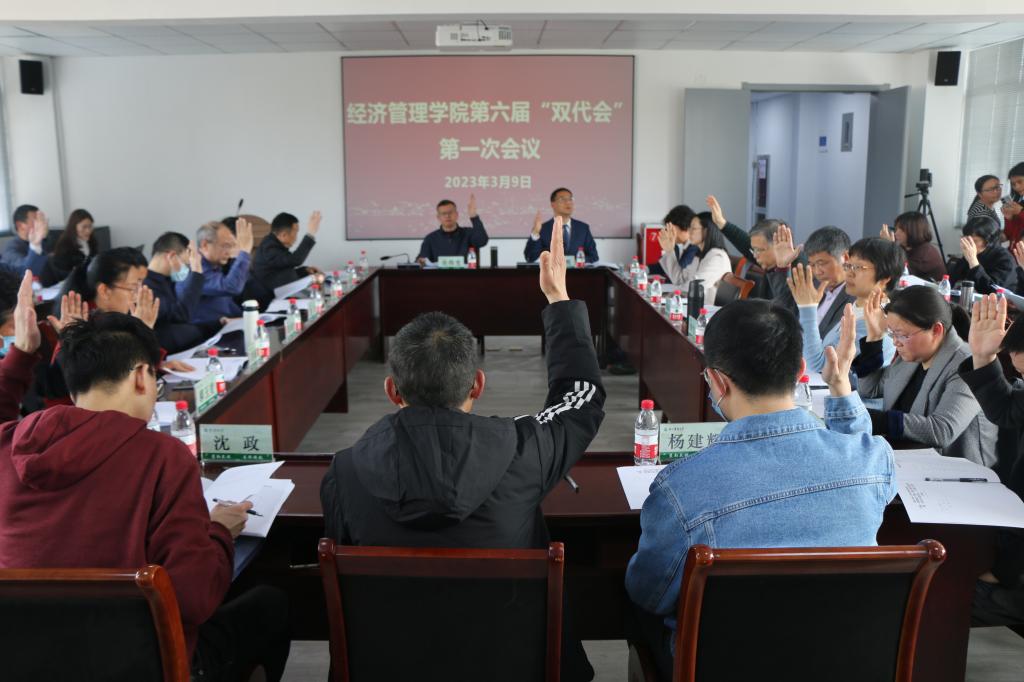 3月9日下午,学院第六届“双代会”第一次会议在实验大楼304举行,学院党政班子、工会主席和全体代表等近40人出席了大会。会议由学院党委书记周凯主持。