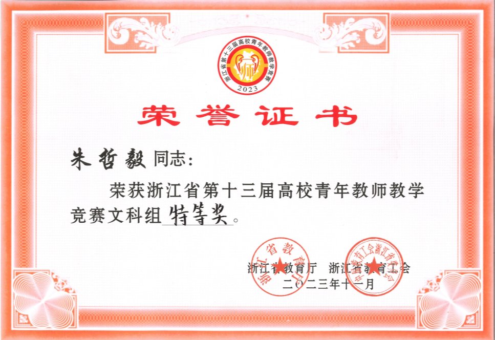 2023年11月4-5日,浙江省第十三届高校青年教师教学竞赛决赛在浙江中医药大学举行,必赢官网青年教师朱哲毅斩获文科组特等奖。该成绩实现了必赢官网在该竞赛领域的重大突破。