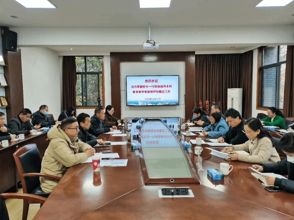 12月11日上午,副校长沈月琴、教务处长郭建忠、教学质量监控与评估中心主任尹国俊、校督导杨丽霞、教学质量监控与评估中心工作人员等一行六人莅临565net必赢客户端指导本科教育教学审核评估整改工作。565net必赢客户端党政领导班子、各学科专业负责人、专业负责人、本科实验教学中心负责人、学生办主任以及学院办公室相关工作人员参加了本次工作会议。