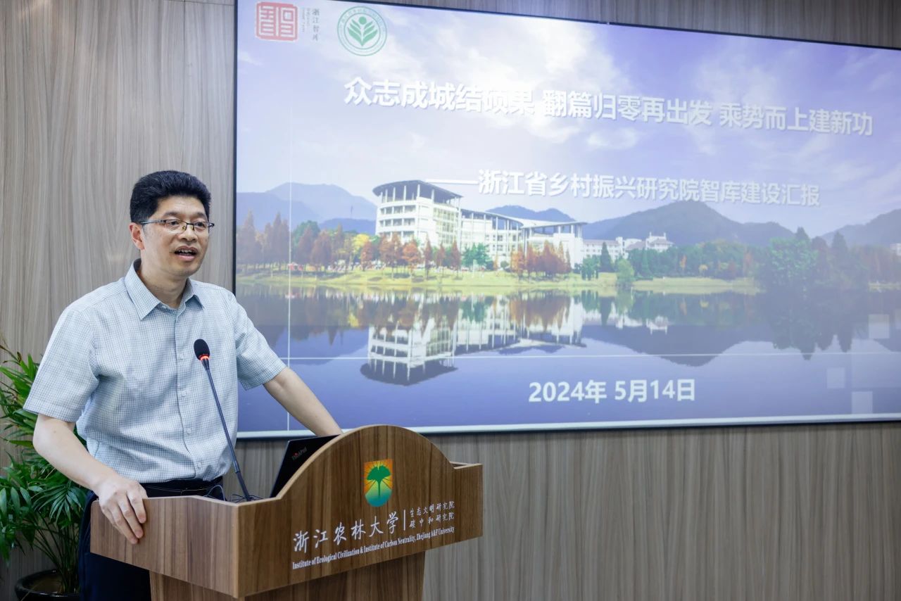 潘伟光执行院长、钱志权副院长分别代表565net必赢客户端浙江省乡村振兴研究院、565net必赢客户端生态文明研究院汇报了智库建设进展,详细介绍了智库在科学研究、成果获奖、服务地方等方面取得的成绩,同时汇报了智库的未来发展规划。