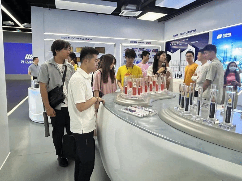 上午九点半,学院师生一行抵达万马集团开展走访调研。展厅参观过程中,企业相关负责人详细地介绍了企业由初创到不断壮大的发展历程、聚焦智能制造的创新发展理念,以及顺应时代着力布局新智造、新材料、新能源的主营业务架构。