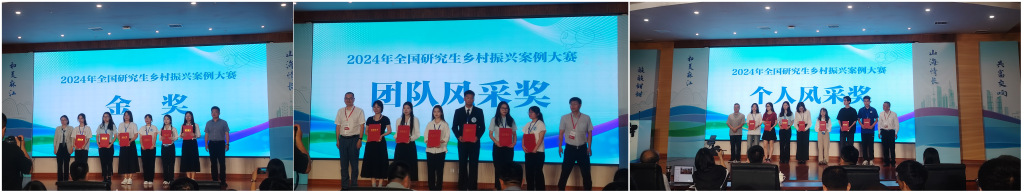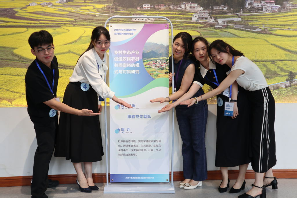 2024年6月19日至21日,必赢官网朱哲毅副教授和宁可副教授带领其硕士研究生团队赴贵州省麻江县参加“2024年全国研究生乡村振兴案例大赛”决赛。经过激烈角逐,团队参赛项目《乡村生态产品促进农民农村共同富裕的模式与机制研究》荣获金奖,团队成员的出色表现荣获“团队风采奖”,项目负责人施芳同学获“个人风采奖”,为学校争光添彩。