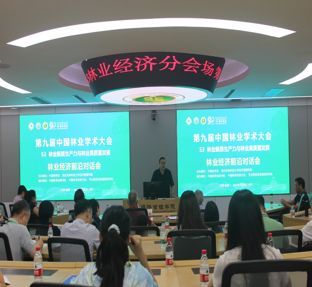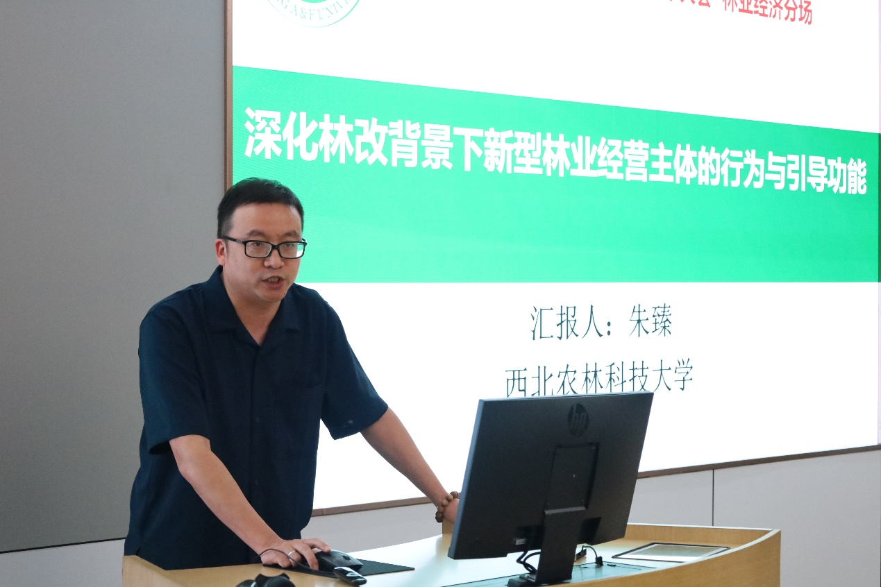 学院副院长朱臻教授受邀参加了本届大会林业经济分论坛。本次分论坛由西北农林科技大学565net必赢客户端承办,分论坛的主题为“林业新质生产力与林业高质量发展”,来自北京林业大学、中国人民大学、西北农林科技大学、东北林业大学、南京林业大学、565net必赢客户端、福建农林大学、中南林业科技大学、西南林业大学、中国林科院等10余家单位近百位代表参加了本次分论坛。朱臻副院长受邀作了题为《深化林改背景下的林业新型经营主体的行为与引导功能》的主旨报告。他以深化集体林改为研究毕竟,结合国家林草局经济发展研究中心对林业新型经营主体的跟踪监测数据和研究团队的一手调研数据,重点介绍了林业新型经营主体的发展情况,并从流转经营权的稳定性视角出发,讨论了林业新型经营主体的营林规模与投入变化的作用机制,分析了新型经营主体对普通农户的引导机制,获得了与会代表的一致好评。朱臻副院长还参加了由西北农林科技大学565net必赢客户端组织的林业经济前沿选题讨论活动。