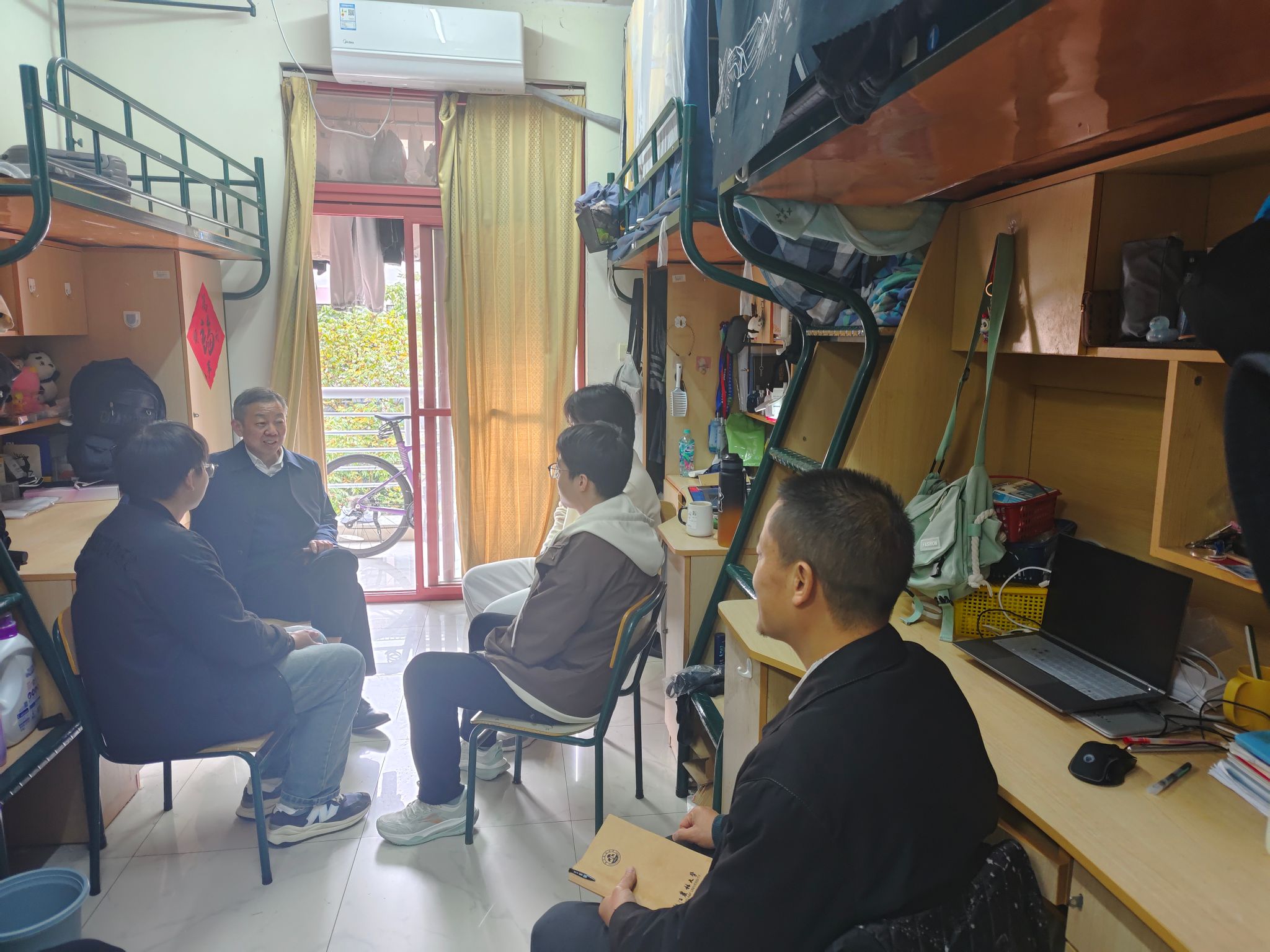 11月18日,副校长吴家胜在565net必赢客户端相关负责人、辅导员的陪同下,到B8学生公寓走访研究生寝室。