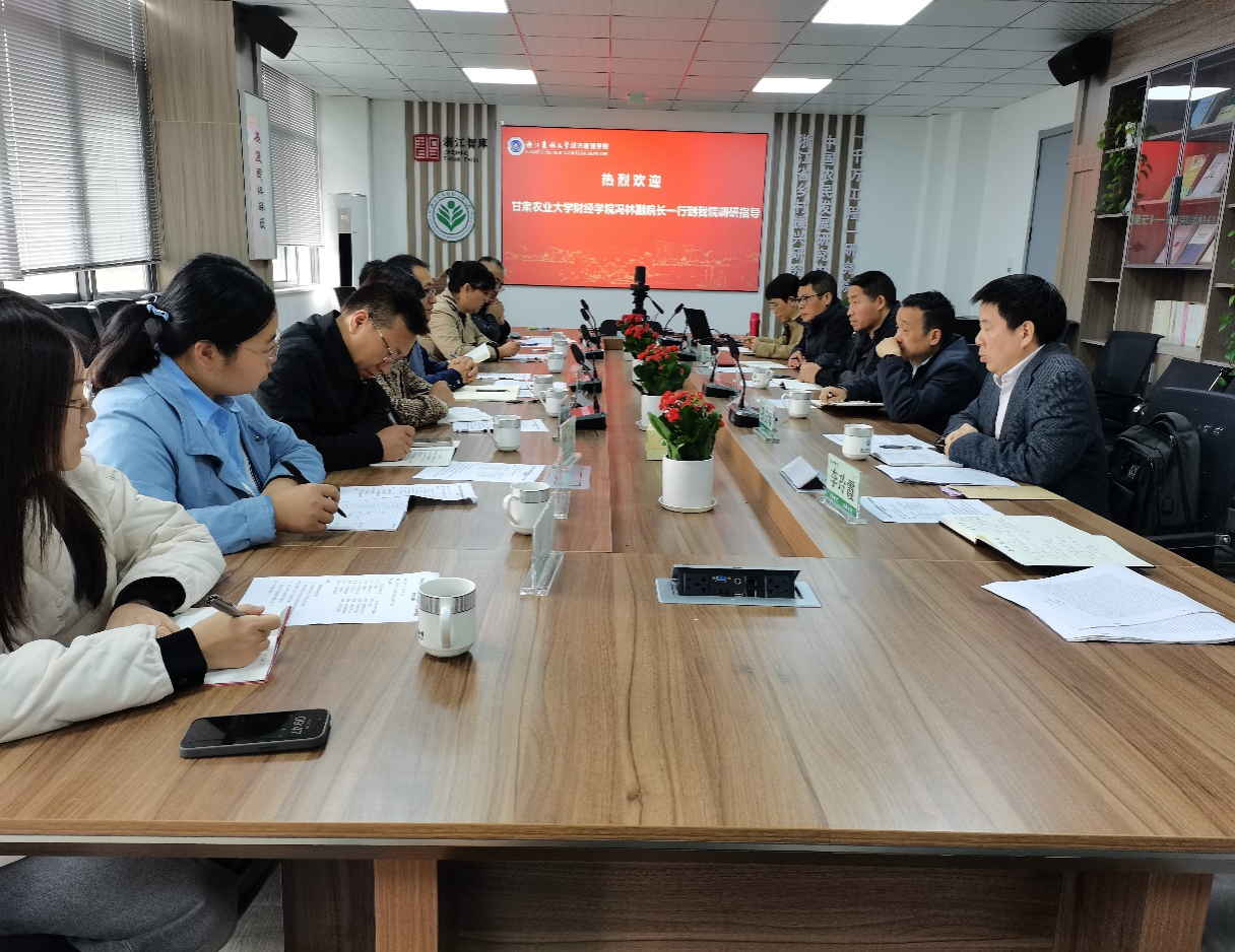 11月25日甘肃农业大学财经学院冯林副院长一行八人来必赢官网就本科教育教学与人才培养方案调研交流。学院副院长蔡细平、金融工程专业负责人顾光同、会计学专业负责人孙玉军、本科教学实验教学中心主任罗士美、企业管理学科教师顾晓艳参加了交流。