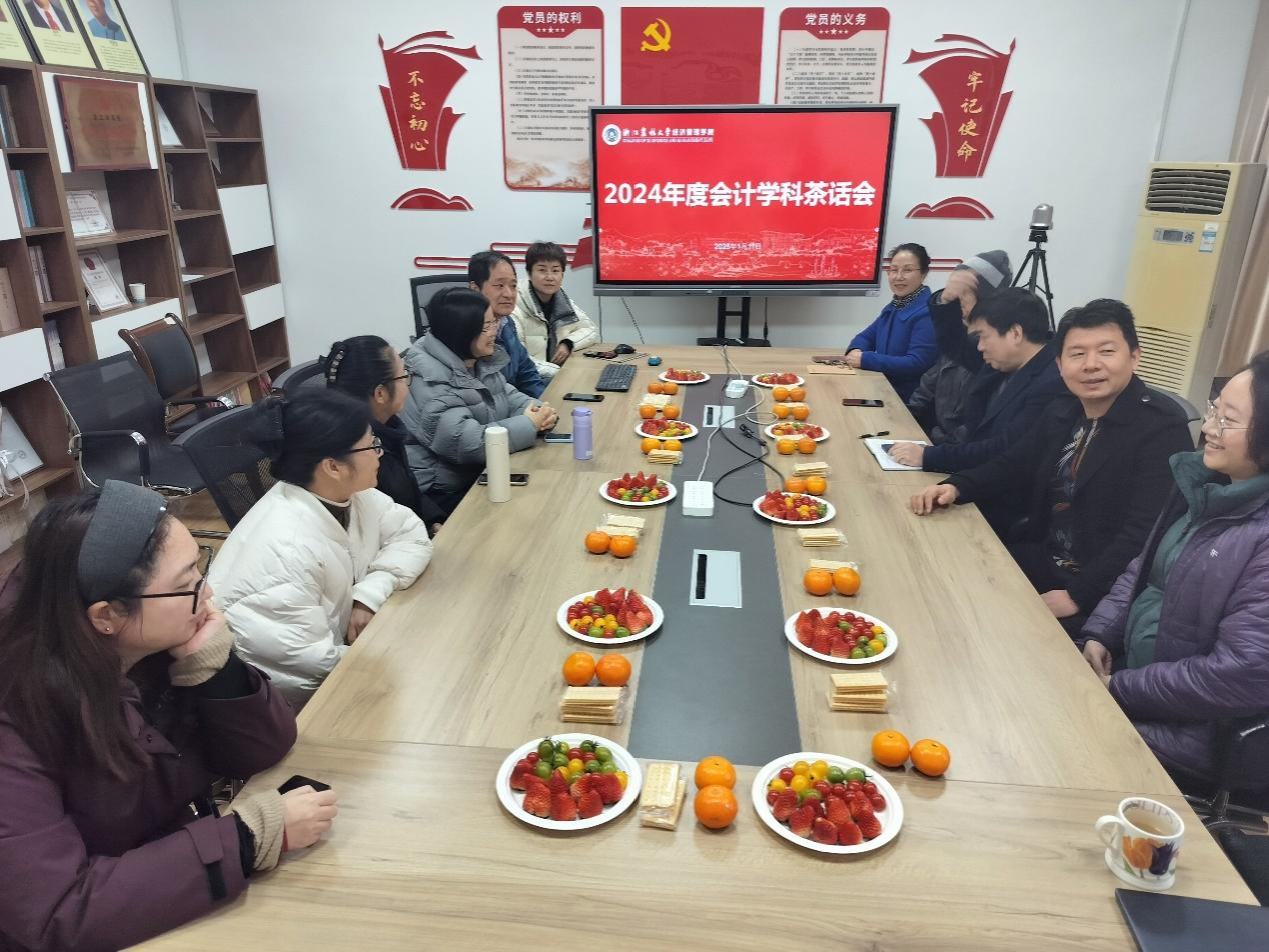 2025年1月11 日上午10点,会计学科 2024 年度工作茶话会在学院楼230会议室温馨融洽的氛围中拉开帷幕。会计学科教师齐聚一堂,共同回顾过去一年的工作成果、存在不足以及新的一年工作计划。本次会议由学科负责人刘梅娟教授主持。