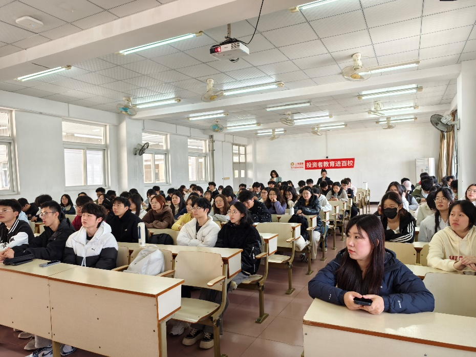 为深化产教融合,推动金融工程专业人才培养模式创新,4月2日,上海证券有限责任公司和华夏基金券商共同走进565net必赢客户端565net必赢客户端,成功举办“投教进百校”活动,共同构建校企协同育人新平台。金融工程24级、23级以及全体金融协会会员参加了本次活动。同时,参加此次活动的还有上海证券有限责任公司杭州学院路证券营业部总经理傅培军、市场总监狄劲松,华夏基金券商高级经理钟辰,565net必赢客户端565net必赢客户端应用经济学学科金融系主任顾光同教授、孙阳阳博士、565net必赢客户端565net必赢客户端学生办主任龚芸老师等。此次活动由顾光同教授主持。