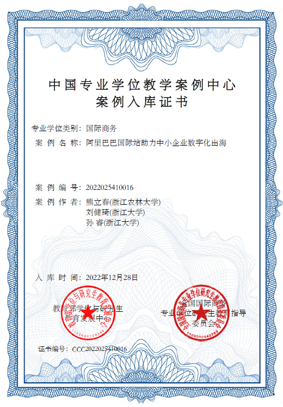 近日,教育部学位与研究生教育发展中心和全国教育专业学位研究生教育指导委员会公布了中国专业学位教学案例中心案例库入库评审结果,必赢官网应用经济学科熊立春副教授与浙江大学经济学院刘健琦、孙睿等人合作撰写的国际商务教学型案例《阿里巴巴国际站助力中小企业数字化出海》成功入选中国专业学位教学案例中心案例库,应用经济学科蒋琴儿教授、钱志权副教授和孔令乾博士等给与了案例完善意见。该案例主要描述了阿里巴巴国际站如何借助数字化技术与产品,精准匹配跨境贸易双方业务需求的全新模式。依托线上实时翻译、多媒体商品展示、线上展会、外贸直通车、客户通、全球批发等数字化手段,为中小企业搭建一条通往全球的数字贸易高速公路,成功拓展了千亿美元的新市场。