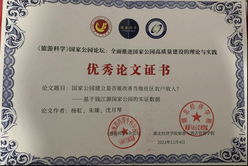必赢官网博士生杨虹、杨俊,硕士研究生王丹婷参加了本次会议,并分别做了题为《国家公园建立是否能改善当地社区农户收入——基于钱江源国家公园的实证数据》《“山水林田湖草沙”一体化下多部门协同生态治理对农户经济福利的影响》《政策支持、邻里效应与农户生态保护参与——基于钱江源国家公园的调查》的分会场报告。