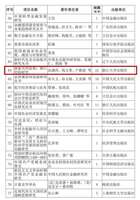 《探索共同富裕:浙江经验研究》项目入选 “十四五”国家重点出版物出版规划增补项目