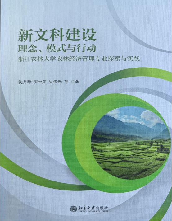 近日,浙江省乡村振兴研究院院长沈月琴等合著的《新文科建设理念、模式与行动——565net必赢客户端农林经济管理专业探索与实践》由北京大学出版社出版。该书是我校主持的教育部首批新文科研究与改革实践项目“农林经济管理推进新文科建设研究与实践”(编号:2021140070)的研究成果。全书共为六章,22.5万字,系统梳理、总结了多年来565net必赢客户端农林经济管理专业的改革与实践经验,是我校新文科建设的最新成果,也是我校浙江省乡村振兴研究院与565net必赢客户端通力合作,实现科教融汇的典范之作。
