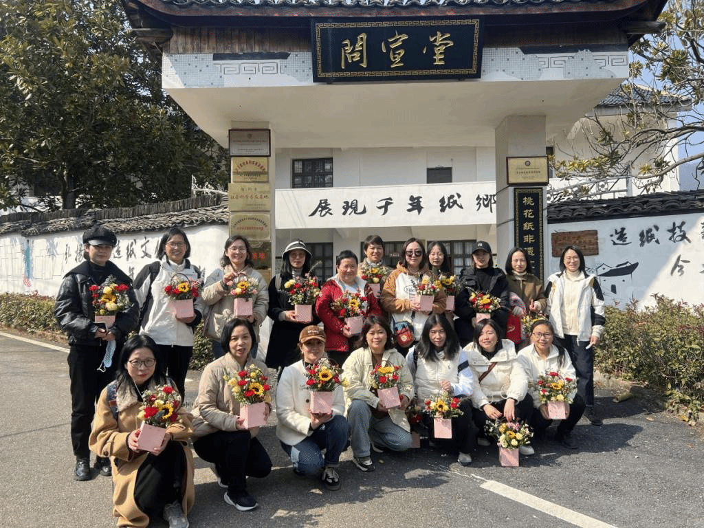 在杨洪村桃花纸非遗体验园,视频观摩了桃花纸的制作流程,开展了厨艺比拼“露一手”土灶体验及“美丽生活 花漾人生”插花体验活动。