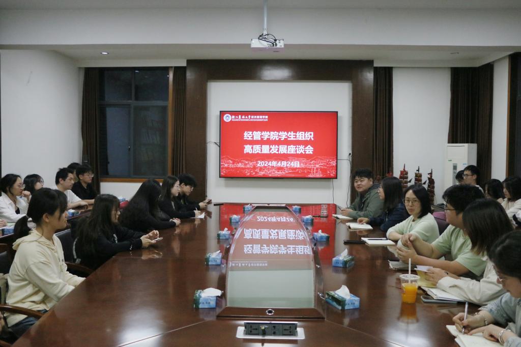 4月24日晚,565net必赢客户端成功举办学生组织高质量发展座谈会。学院学生工作负责人胡云云主持会议,与院团委书记钟程凯、学生会秘书长蔡广越、辅导员及各部门负责人、优秀工作者共同探讨学生组织的挑战和未来发展。