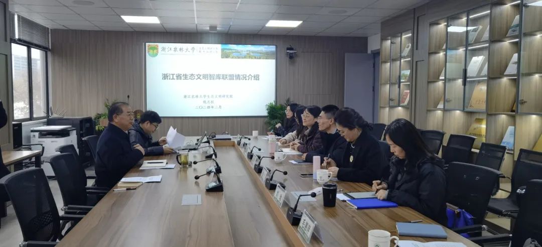 在交流座谈环节,双方对于生态文明智库联盟工作,智库申报工作,课题开展工作进行深入探讨。习近平总书记强调,改革发展任务越是艰巨繁重,越需要强大的智力支持。党的十八大以来,以习近平同志为核心的党中央提出要把加强中国特色新型智库建设、建立健全决策咨询制度,作为一项重大而紧迫的任务切实抓好。在各单位的重视支持和各方面共同努力下,浙江省生态文明智库联盟建设正在取得积极进展。未来,沿着“两山”理念开辟的正确道路,智库将不断进行理论探索,持续开展实践创新,为绿色发展、美丽中国建设贡献智慧和力量。