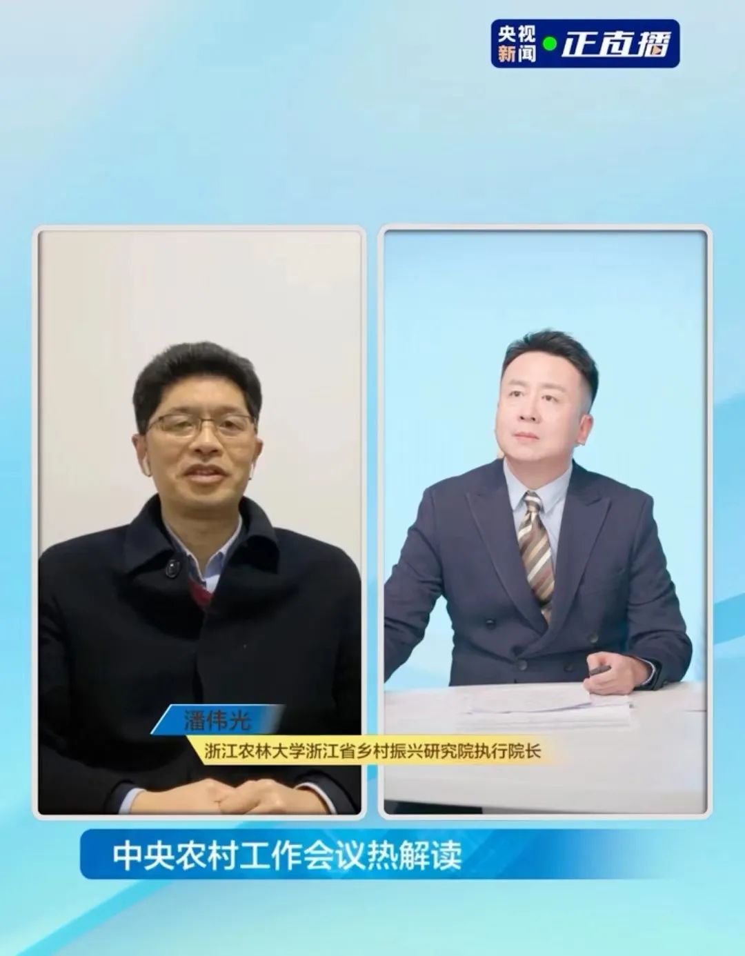近日,中央农村工作会议在北京召开。今年中国农业农村经济运行如何?2024年三农工作如何干?乡村振兴如何全面推进?近日,央视新闻邀请中央农办、农业农村部乡村振兴专家委员会委员张红宇等专家对相关政策进行了深度剖析解读。在谈及“‘千万工程’实施以来,浙江乡村在哪些方面变化最大”的话题时,必赢官网潘伟光教授作为视频连线专家,通过云连线的方式作了解答。