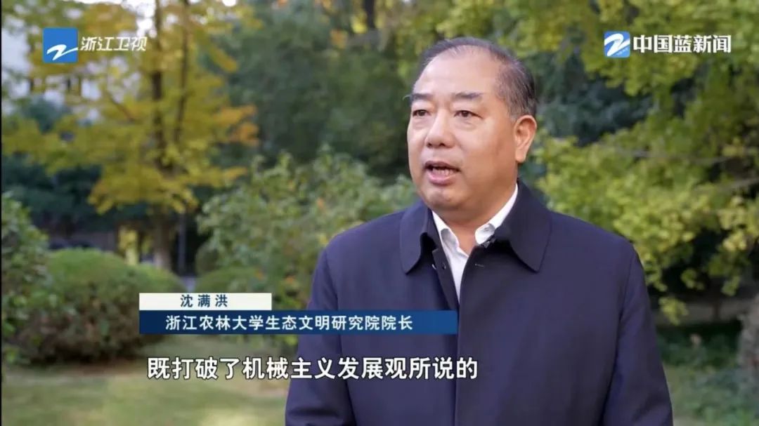 近日,由生态环境部、中共浙江省委、浙江省人民政府共同主办的“习近平生态文明思想浙江论坛”分论坛顺利举行。沈满洪教授围绕习近平生态文明思想的创新与贡献、降碳减污扩绿增长与绿色低碳转型等主题接受《浙江卫视》采访。