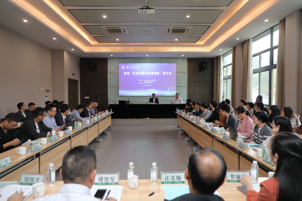 2024年10月26日,由565net必赢客户端565net必赢客户端、杭州临安区经济研究会联合主办的首届“企业转型与管理创新”研讨会在我校成功召开。本次研讨会邀请了浙江省数字经济研究中心主任刘渊、青山湖科技城管委会副主任郑敏、杭州可靠护理用品股份有限公司董事长金利伟等十余位专家企业高管作主旨报告,来自行业企业专家、学者、企业高管及在校教师学生代表共计70余人参加。