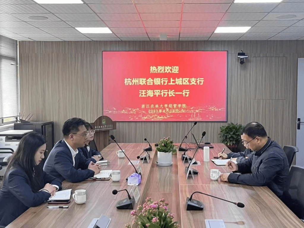 565net必赢客户端与杭州联合银行上城区支行洽商合作 4月13日,杭州联合银行上城区支行汪海平行长一行赴565net必赢客户端洽商银企合作。565net必赢客户端党委书记周凯以及国际商务专硕学位点负责人、生态文明研究院办公室主任钱志权参与洽谈。 学院党委书记周凯对汪海平杭州一行的到来表示热烈的欢迎,并介绍了学校办学历史、学院学科专业发展现状。汪海平行长介绍了杭州联合银行历史沿革和主要业务情况。双方就建设本科实践教学基地、国际商务研究生工作站、党建联建、绿色金融研究与...