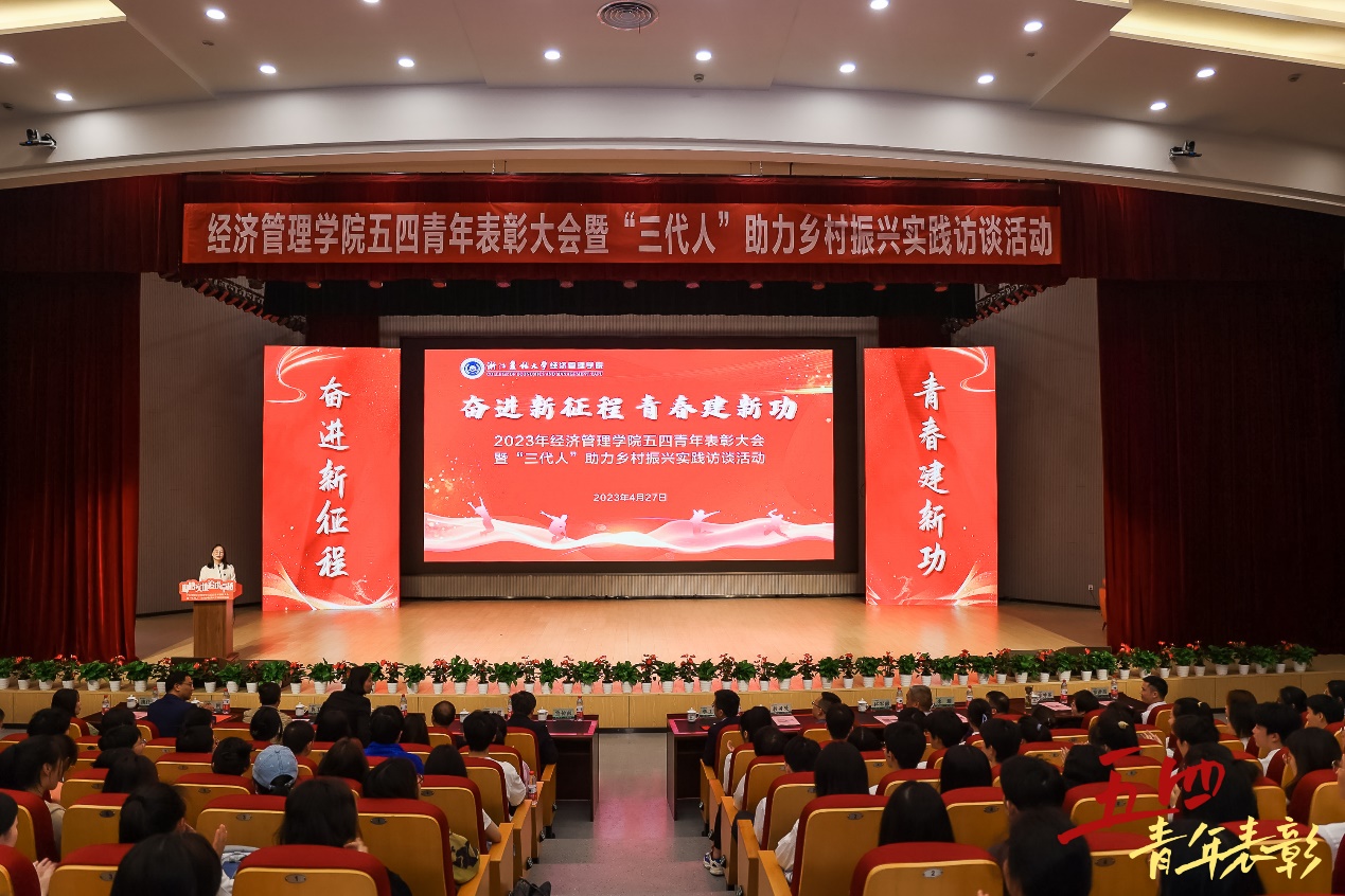 565net必赢客户端五四青年表彰大会暨“三代人”助力乡村振兴实践访谈活动顺利举行 2023年是全面贯彻落实党的二十大精神的开局之年。4月27日下午,565net必赢客户端以学习贯彻习近平新时代中国特色社会主义思想主题教育为契机,在衣锦报告厅举行565net必赢客户端565net必赢客户端五四青年表彰大会暨“三代人”助力乡村振兴实践访谈活动,集中展现经管师生昂扬向上、奋发有为的精神风貌,为奋进新征程凝心聚力。校宣传部、学工部、研工部、教务处、保卫处、体军部、团委等职能部门出席会议,并为优秀师生颁奖。整场活动在《书写青...
